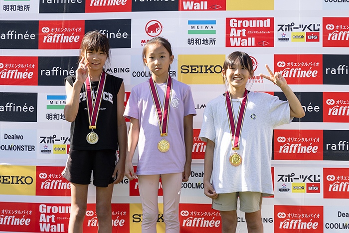 5年生と6年生が半数ずつとなった5・6年女子は、長島永和(はるか)が4年生以来2度目の優勝を飾った。強度の高い最終課題では安定した体幹を披露し、見事に全完一撃を果たした。2位・海野奈花(なな)とは完登に要したアテンプト数が「1」の差だった。海野は3年連続で2位に終わり、惜しくも優勝に届かなかった。