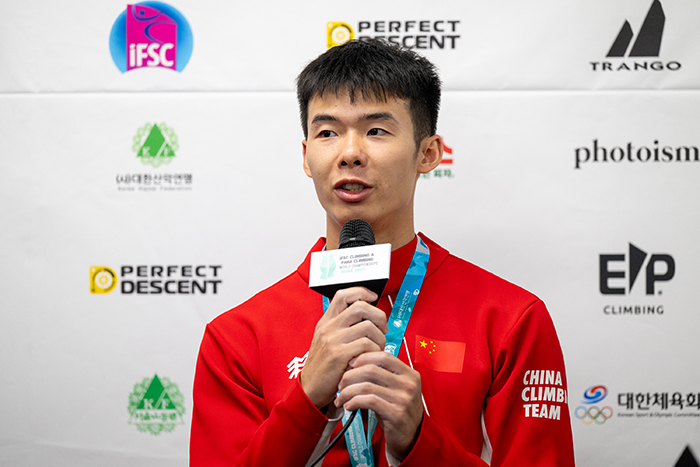 韓国・ソウルで開催中のIFSCクライミング世界選手権は25日、男子スピード予選・決勝を行い、中国のロン・ジェングオがレースを進めるごとにタイムを縮めて初優勝を飾った。日本勢は5人が出場し、藤野柊斗が決勝トーナメントに進出して16位だった。日本人選手とロンに現地で取材した。