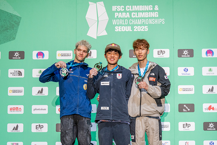 韓国・ソウルで開催中のIFSCクライミング世界選手権は大会最終日の28日、男子のボルダー準決勝、決勝を行い、18歳の安楽宙斗が唯一の全完登で自身初の世界選手権優勝に輝いた。
