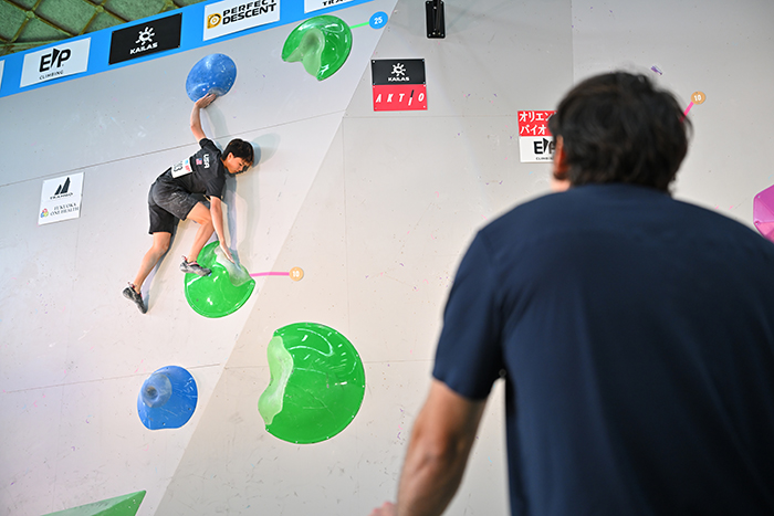 日本は安楽宙斗、天笠颯太、野中生萌、中村真緒と世界トップクラスの実力者たちが出場。安楽と野中が安定したムーブで第1、第2課題を一撃するなど各課題を3アテンプト以内に仕留めた。男女混合課題は天笠と中村のペアで登り、細かいホールドにもうまく対応して共に一撃。近くで見守っていた安楽、野中、安井博志コーチらとグータッチして喜んだ。