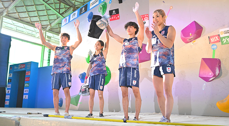 IFSCクライミンググランドファイナルズ福岡2025が23日、福岡県飯塚市の「筑豊緑地公園 / いいづかスポーツ・リゾート ザ・リトリート」で開幕し、6カ国による国別対抗戦「ネーションズグランドフィナーレ」のリード予選で日本が2位で決勝に進出した。予選を終えた安楽宙斗、吉田智音、谷井菜月の日本人選手3人が取材に応じた。