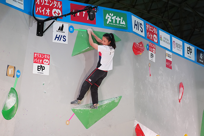 女子で唯一第3課題を登り切った中村。男子も超える74.9ポイントを獲得した