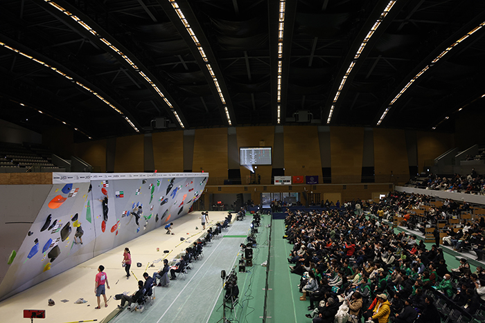 スポーツクライミングの国内初戦、ボルダージャパンカップが31日、東京・駒沢オリンピック公園総合運動場屋内球技場で開幕した。女子予選では上位14人が全5課題を完登するなど、高得点が続出する展開となった。