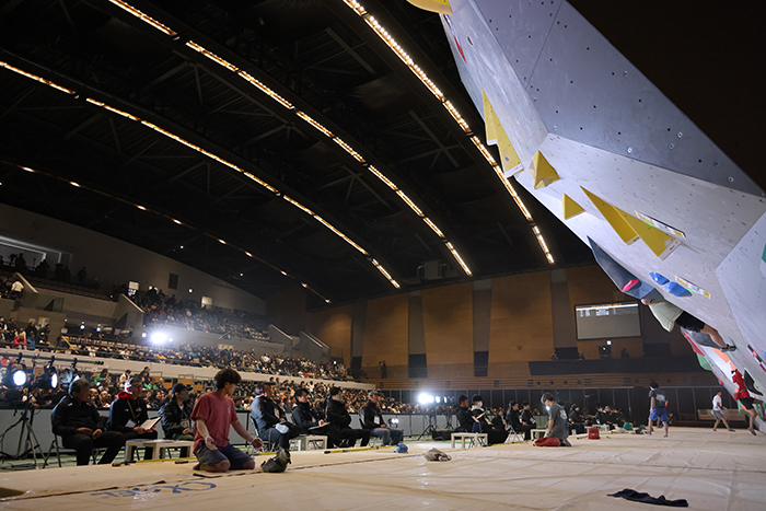 安楽は第1課題を無得点で終えたが、その後は本領を発揮。ハードなムーブを軽快にこなし、トップタイとなる74.9点に到達した。楢崎明智も安楽同様に第1課題で0点と出遅れたが、人が変わったように軽々と3つの完登を重ねていった。74.9点で安楽と楢崎が並び、予選順位上位の安楽が1位となった。