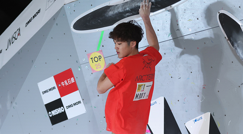 1日午前、ボルダージャパンカップ(BJC/東京・駒沢オリンピック公園総合運動場屋内球技場)の男子準決勝が行われ、世界ランキング1位で前回王者の安楽宙斗がトップ通過を決めた。