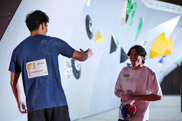 安楽が第3課題で無得点に終わったことで俄然、楢崎明智が有利となる。最終課題は高負荷の超難関。体力及ばず落下する選手が続出した。ゾーンに達すれば優勝の楢崎明智は1トライ目でその10点を獲得。攻略には至らなかったが、競技終了後には兄の智亜が出迎えて弟の優勝を祝福した。