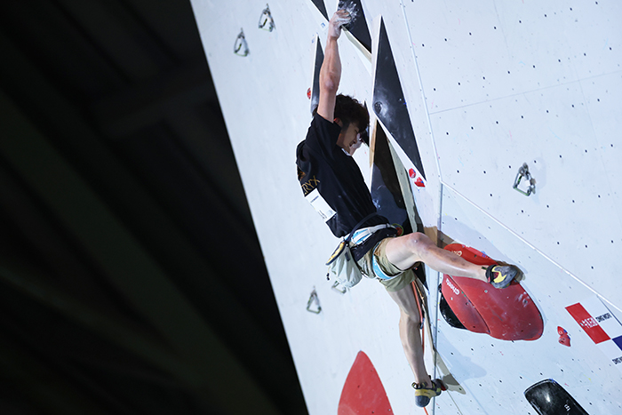 8日午前、スポーツクライミングのリードジャパンカップ準決勝(三重県伊賀市/DMG MORIアリーナ)が行われ、男子は前回王者の安楽宙斗が首位で決勝に進出した。
