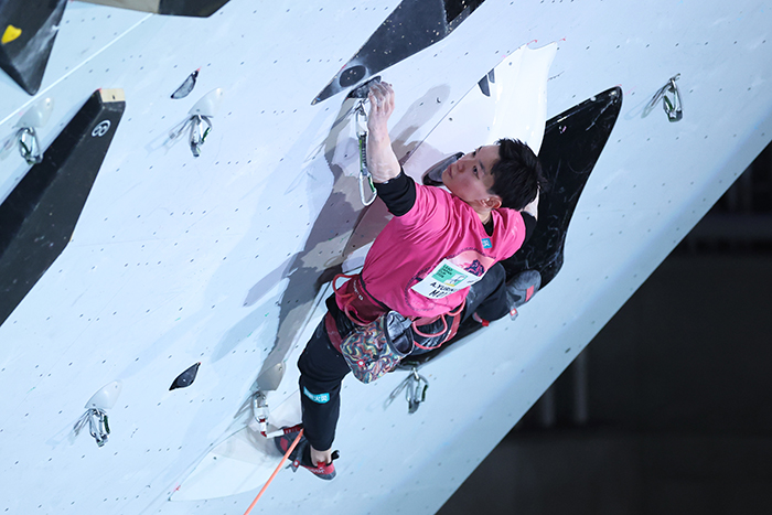 最後のパートは得意なカチが連続して出てきたので、そこで体力や落ち着きを取り戻せて数手踏ん張ることができた。最後の得意パートで勝たせてもらった感じ。疲れてからの判断力が鈍くなることを準決勝、決勝で感じた。改善するには、より実践に近いような練習をもっと増やしていかないといけない。ボルダー力もまだまだ。今シーズンは最初のアジア選手権(4月)がその先の大きな大会に繋がっていく重要な大会。そこに一番のフォーカスを置いて、この1カ月はトレーニングしていく。その後のワールドクライミングシリーズ(WCシリーズ)のシーズンも自分にとってはまだまだ経験の浅い大会になる。一歩ずつ、すべてに真剣に向き合って、安定して結果を残していくことも目標」